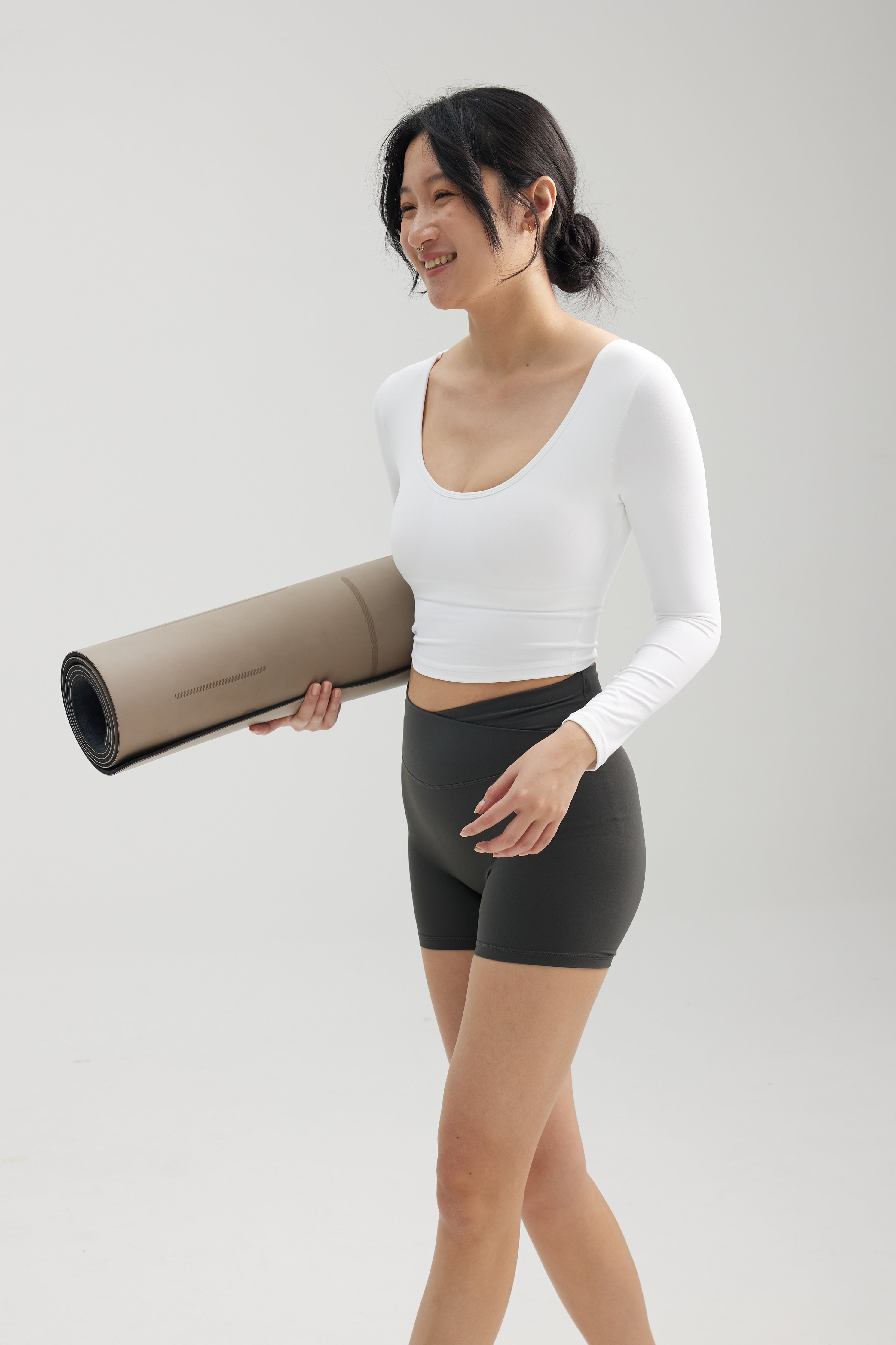 Boat neck or scoop neck - in one top. Our long sleeve crop with built-in bra that's perfect for yoga, pilates or any of your feel-good movement.